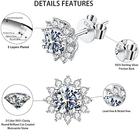 Moissanite diamond earrings,1 carat /2 carat 925 sterling silver screw back diamond stud earrings, gold and white heart-shaped diamond Moissanite jewelry gift for lady mother wife