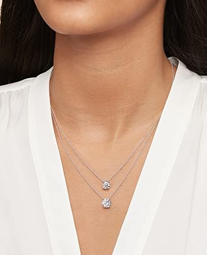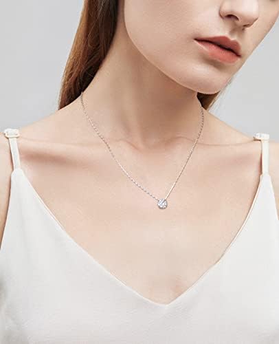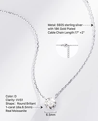 FCINOS Women's necklace, round pendant Moisanne stone choker 18K gold plated 925 sterling silver 1-2 carats bright cut,17+2 inch (about 43.1 cm) long chain jewelry gift for women girls men